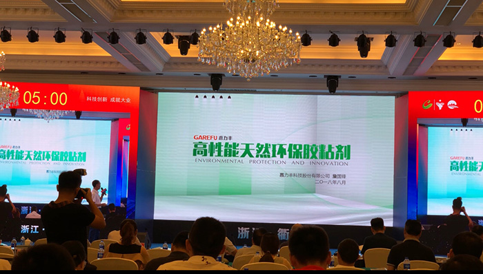 接下来,主持人宣布比赛正式开始。参赛选手按抽签顺序依次答辩。嘉力丰总经理詹国锋先生以“高性能天然环保胶粘剂”为主题阐述了嘉力丰的创新之路、创新成果、企业创新实力和创新理念。面对评审团首席评委的提问,詹总对答如流,赢得台下掌声不断。