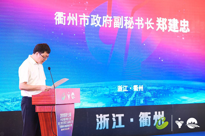 衢州市政府副秘书长郑建忠先生为决赛致辞,他阐述了大赛的举办对衢州市的意义,强调它为衢州品牌的打响提供动力。
